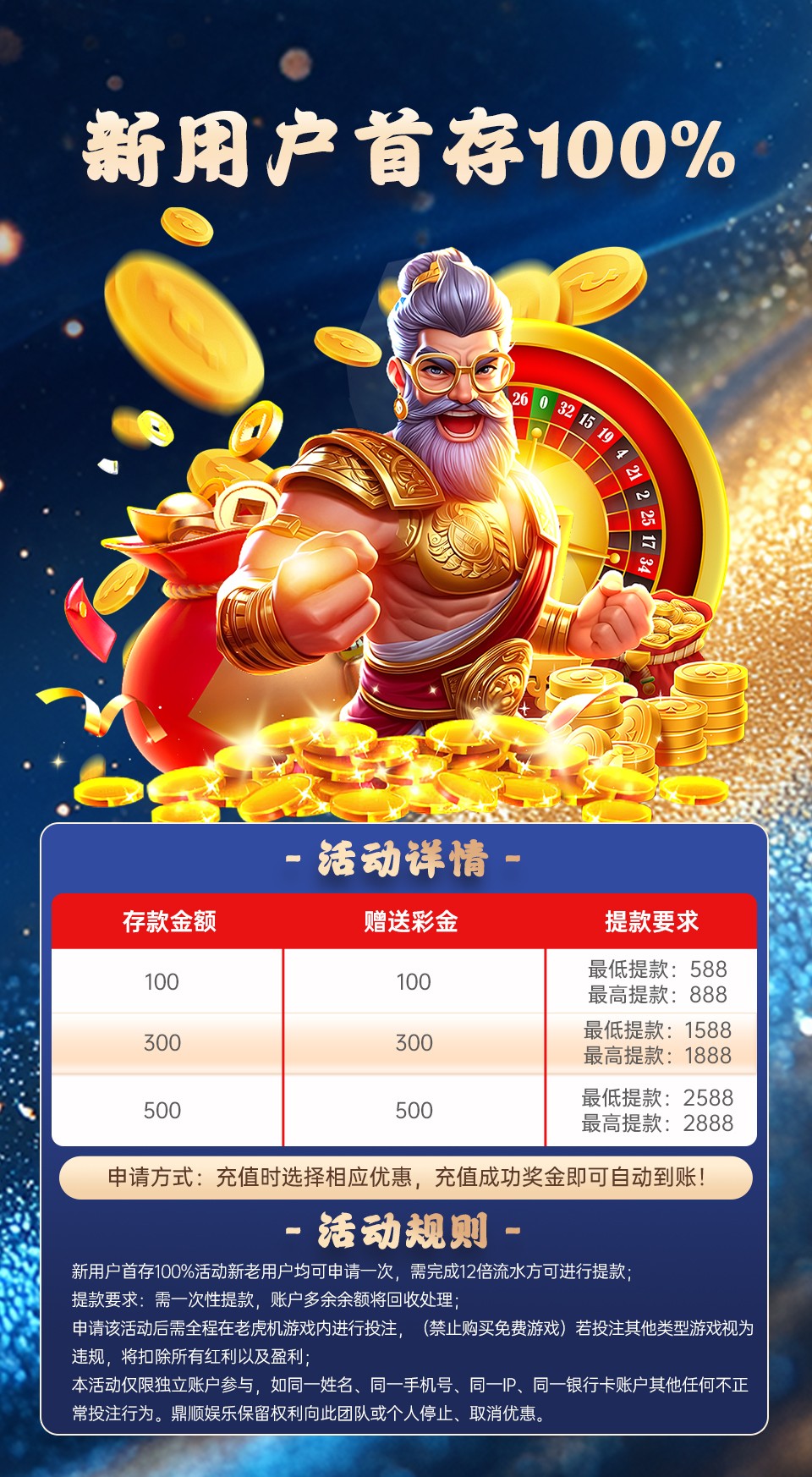 首存活动:100+100/300+300/500+500,规则看图片。