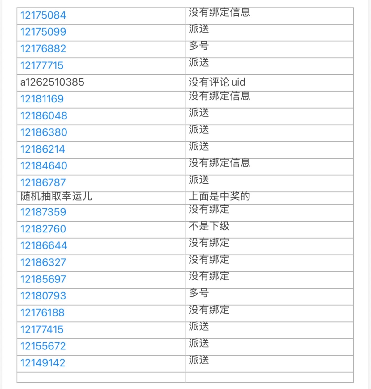 只处理一次,未绑定信息的,等待下期抽奖,送过的评论中奖,取消论坛其他福利。
