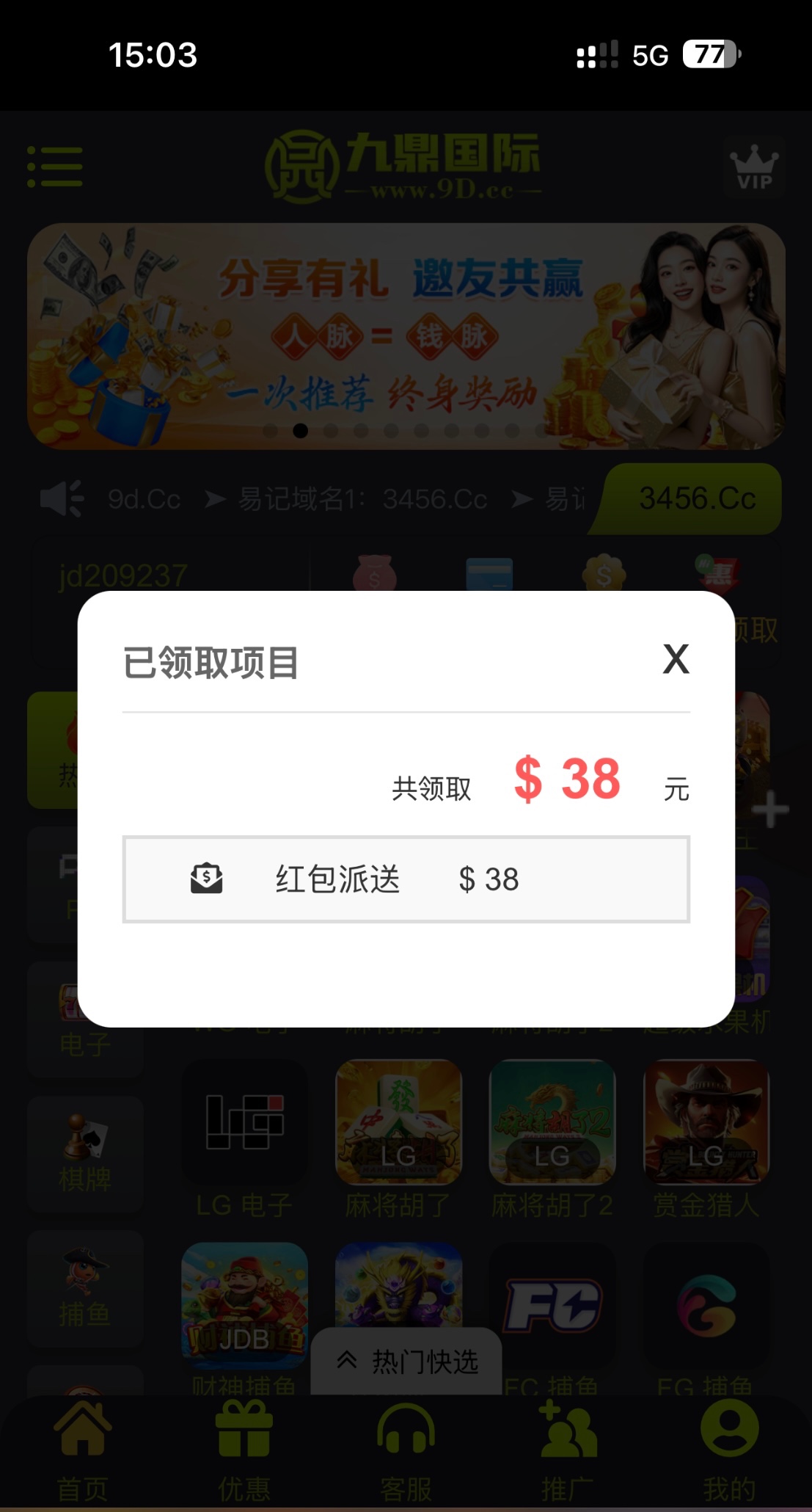 【九鼎】—✅—回馈彩金38