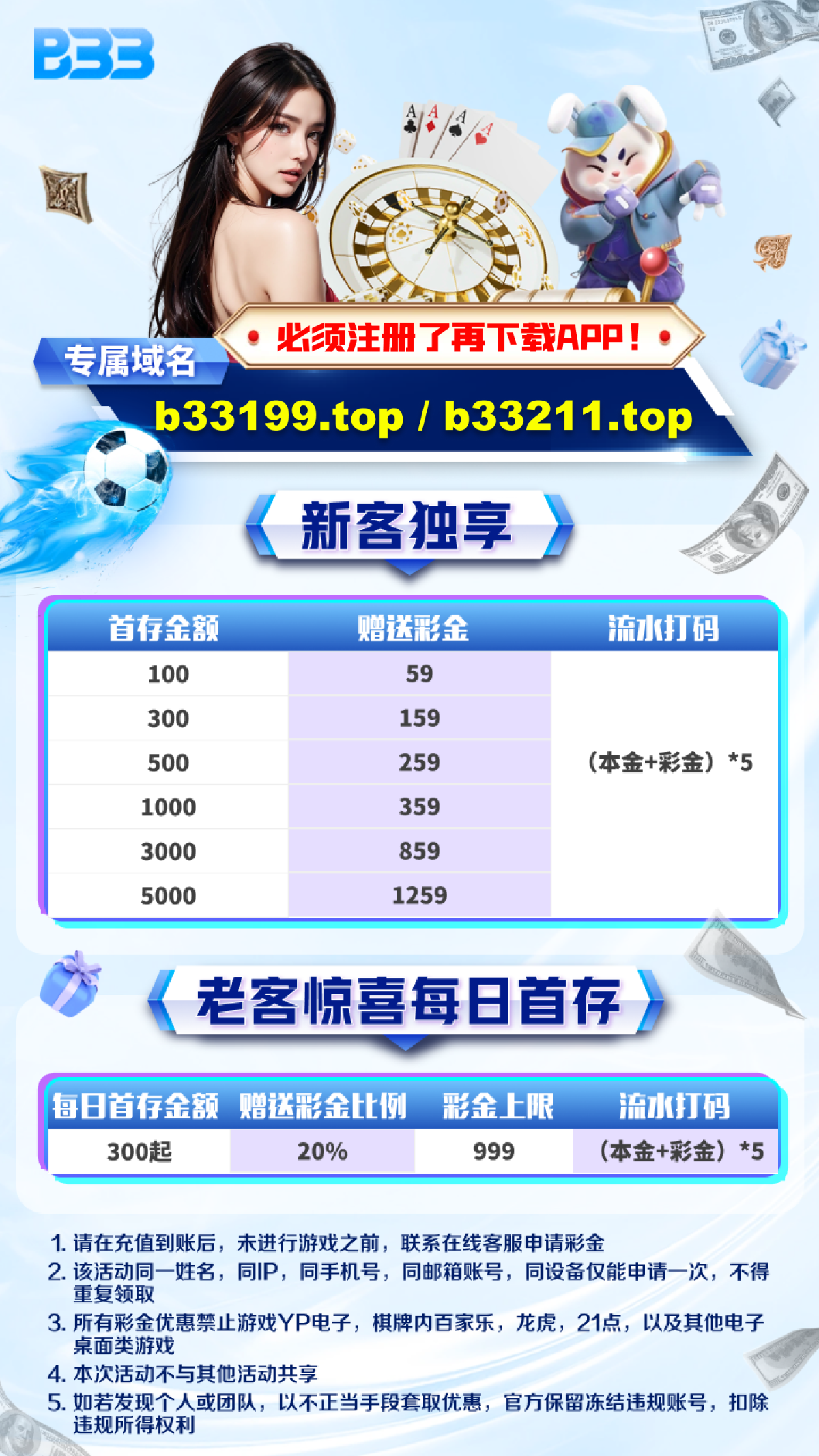 首存:100+59 300+159 500+259 1000+359 5水(电子、棋牌、捕鱼,其他游戏不参与,联系客服领取)